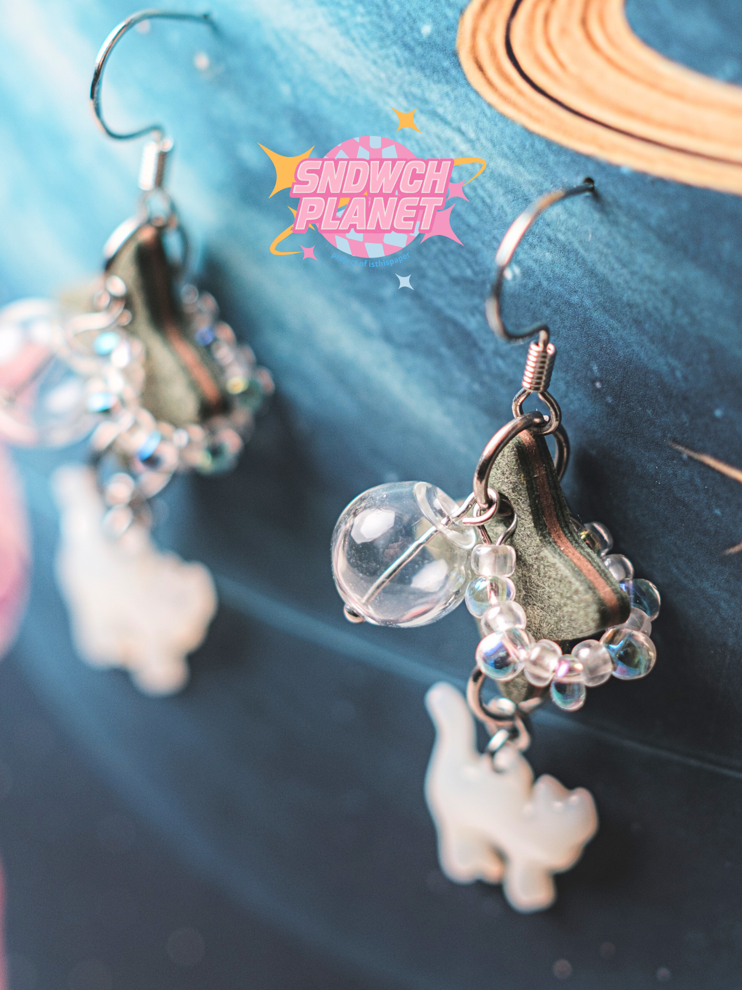 於是,我們把它們一層層壓起來,做成像三文治一樣厚厚實實的夾心耳環小吊飾,整整 六層厚!再加上一圈圈用天然碎石裝飾成的行星環🪐,每一副耳環,就是一顆你專屬的小行星。